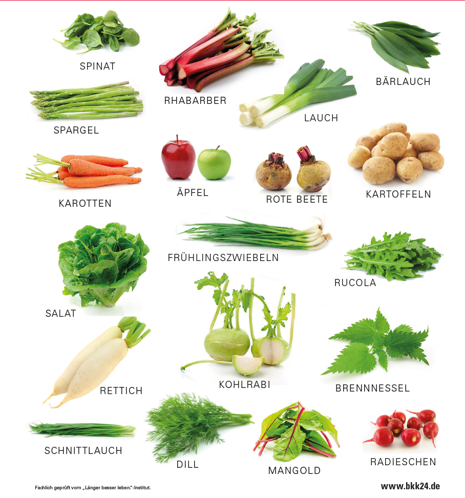 Gesundheitsplus: Frisches Frühlingsgemüse liefert viele Vitamine und Mineralstoffe. Besonders grüne Sorten wie Spinat oder Rucola unterstützen mit Folsäure und sekundären Pflanzenstoffen deinen Stoffwechsel.